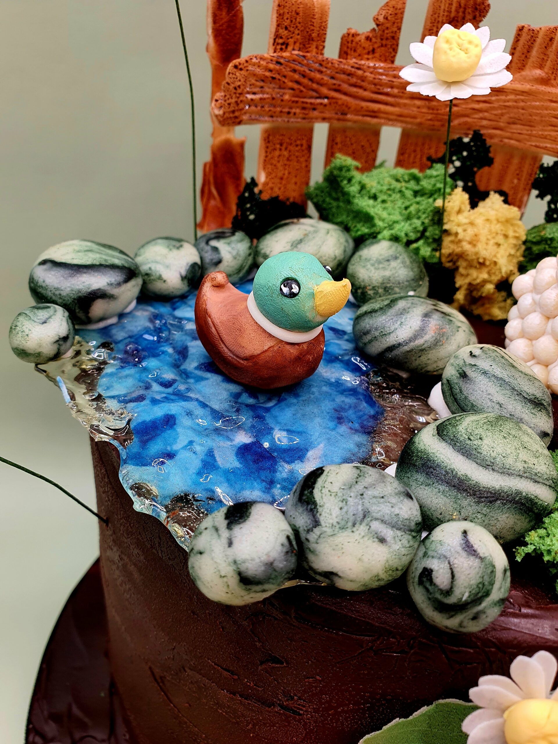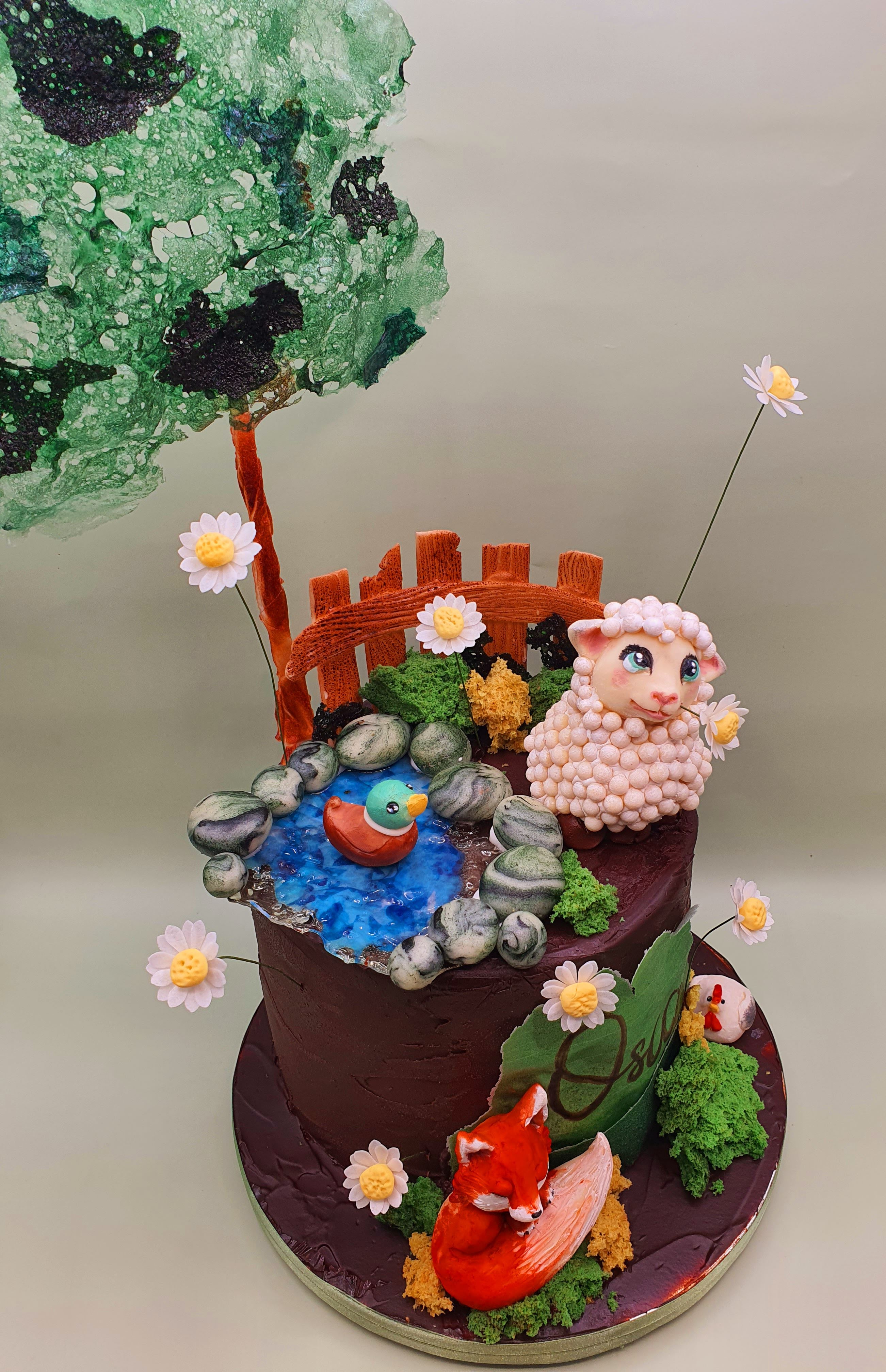 Pour ses 4 ans, sa maman m’a commandé un joli gâteau qui évoque cet univers bucolique.